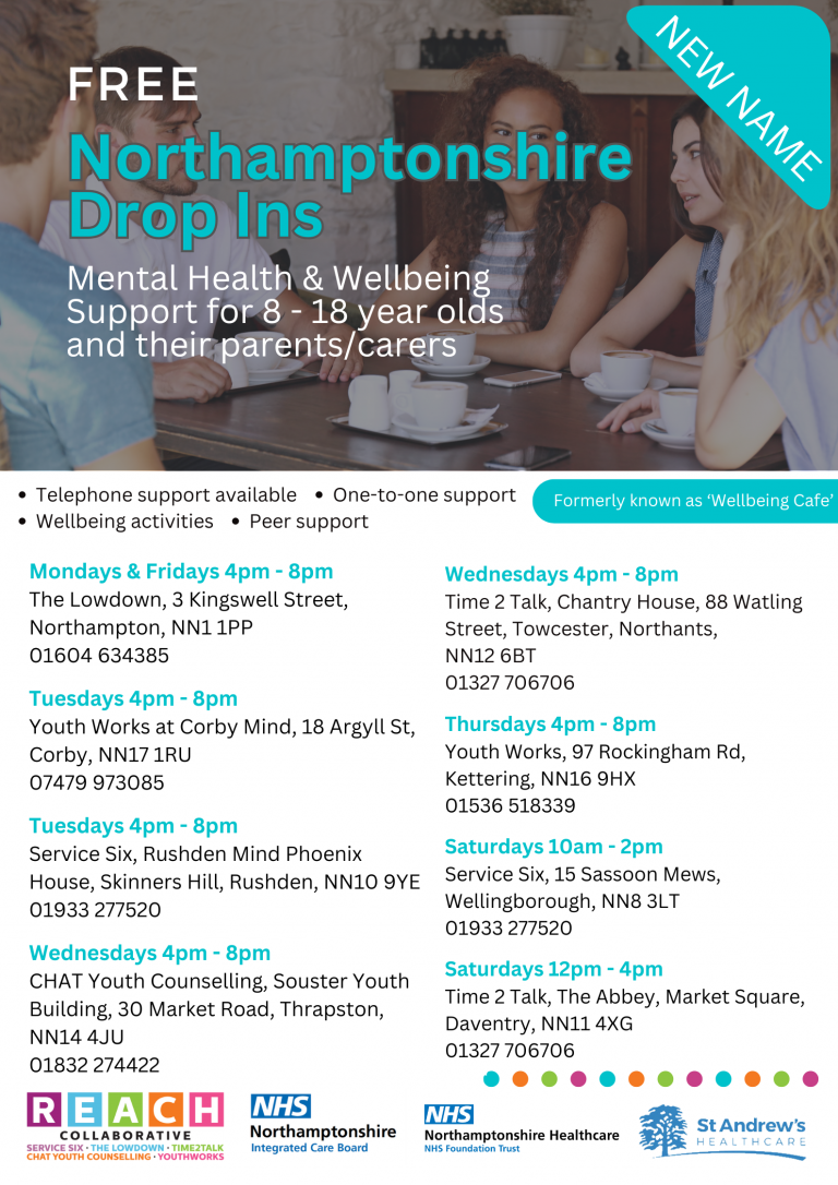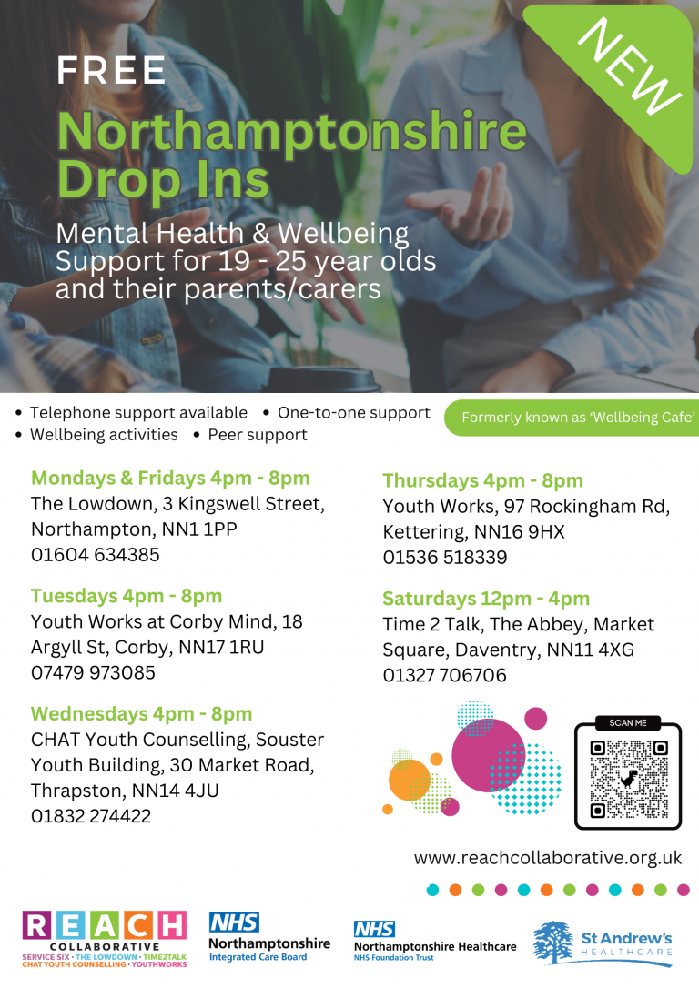 They cover the Corby and Kettering area for counselling for young people and run a wellbeing drop-in on Tuesday evenings from 4-8pm at the Corby Mind building and on Thursday evenings from 4-8pm at the Keystone centre. Visit their website here: https://www.youthworksnorthamptonshire.org.uk/ or download the below leaflets for more.